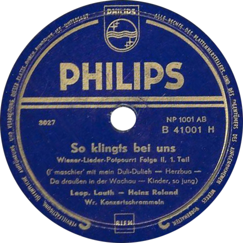 Ich denke, ihre Plattenkarriere mit Mizzi Starecek begann erst danach (oder begleitend!?). Davor wirkte sie noch unter dem Namen „Poldi Sendau“ in der Operette „die lustige Witwe“ mit – und irgendwann, so Anfang der Vierziger Jahre, wird sie dann geheiratet haben und nennt sich (zumind. zeitweise) „Leopoldine Lauth-Brammbach“. Meine letzte Platten mit ihr, aufgenommen gemeinsam mit „Heinz Roland u. d. Wr. Konzertschrammeln“ – ist vom 18. 08. 1950 (Phillips) – was danach aus ihr wurde, weiß ich leider nicht!