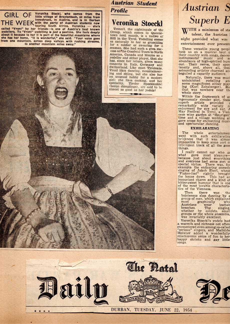 Und wieder einmal hatte ich GROSSES Glück! - „wäre schön, wenn jemand wüßte was aus Vroni Stöckl wurde“  – mit diesen Worten habe ich den Text zu meinem ursprünglichen Archiveintrag beendet. Daraufhin haben sich zwei der drei Töchter von Vroni Stöckl bei mir gemeldet  – und nun kann ich Näheres über diese tolle Tiroler Zitherspielerin und "außergewöhnliche" Jodlerin berichten. Neben Daten habe ich noch Bildmaterial zur Verfügung gestellt bekommen – auch über die Goodwill-Tour (u. a. mit Karl Zahaberger) - darüber werde ich einen eigenen Archiveintrag anlegen.